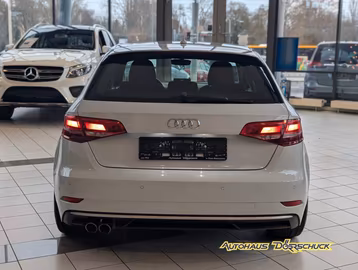 Dieser Audi A3 Sportback 1.5 TSI ACT in eleganter weißer Lackierung überzeugt als sportlicher und zugleich effizienter Begleiter für jeden Anlass – ideal für Fahrer, die Dynamik und Komfort vereinen möchten.